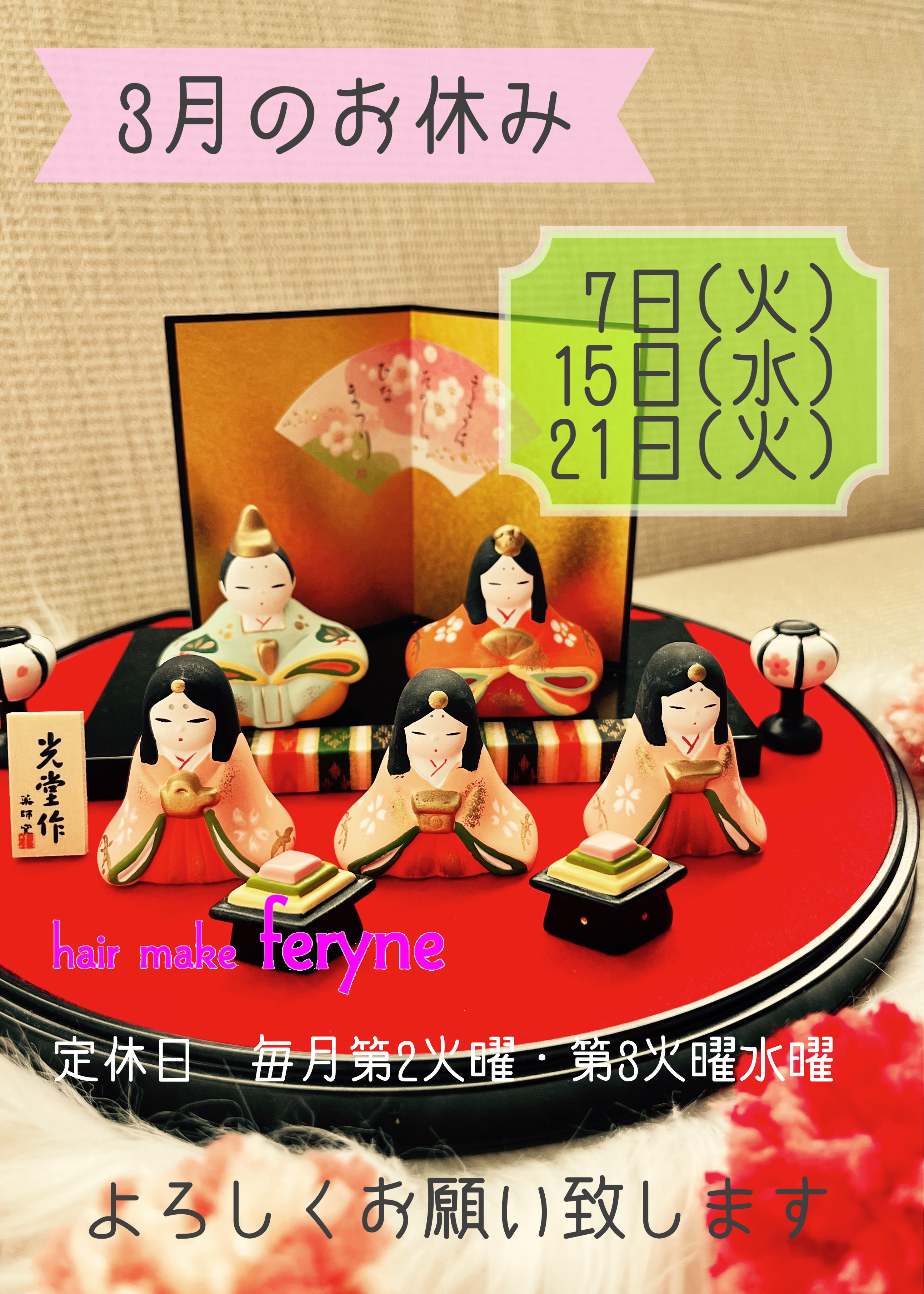 中野の美容院・美容室 フェリーネへのご予約は下記から