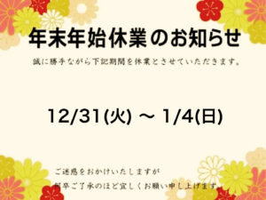 年末年始休業のお知らせになります